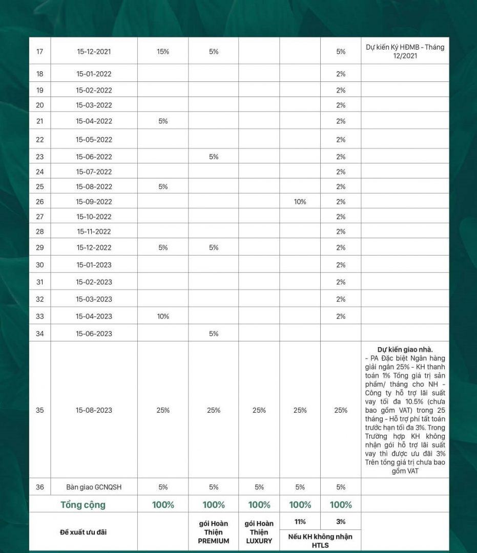 Thanh toán trong 36 tháng & đợt 1 chỉ 15%